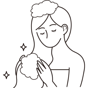 500円玉大、または適量のシャンプーを手に取り、よく濡れた髪へ根元を中心に塗布し、空気を入れるように泡立てます。
