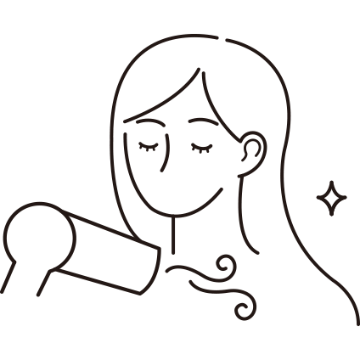 根元を中心にふんわりとドライヤー等で乾かしたあと髪質に合わせた温風で毛先がツルッとするまで乾かします。しっかりと乾かすと、次の日の朝もまとまりやすい仕上がりになります。