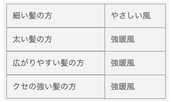 | 広がりやすい髪の方 | 強暖風 |